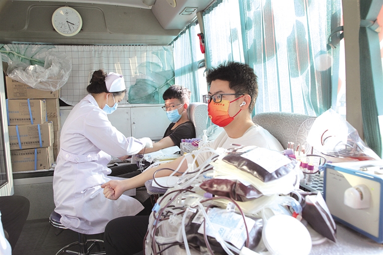 在血小板采集室,记者遇到一位熟悉的面孔,他叫狄毅杰,是内蒙古工业大学新城校区材料学院大三的学生。令人钦佩的是,上大学期间,他把无偿献血当作一种习惯坚持下来,已成功捐献血小板10次。“第一次献血纯属凑数。当时听说血液中心血液库存不足,就来了。之后每次来献血都会听到类似的情况,也会碰到许多无偿献血志愿者,虽然有时献血需要排队等好长时间,针管扎入血管的瞬间很疼,也不知道自己的血液会给谁用,但是看着鲜红的血液从体内流出,想着这袋温暖的血液能够救死扶伤,就觉得自己做了一件很有意义的事情。” 狄毅杰说,每次献完后几天他就会收到血液中心发来的“检验合格”的短信,以及血液送往哪个医院的反馈,这是最让他激动的时刻。“我爱运动,喜欢打篮球,如果身体条件允许,我会一直坚持献下去。”
