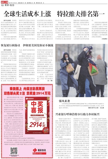 其余进入全球生活成本前十名的城市从前到后依次为:瑞士苏黎世、中国香港、美国纽约、瑞士日内瓦、丹麦哥本哈根、美国洛杉矶和日本大阪。