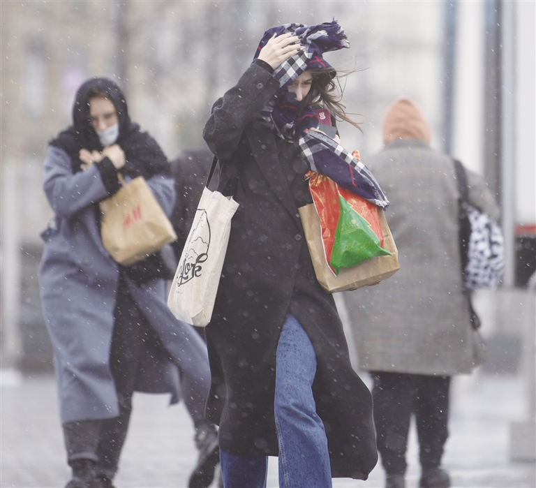 人们顶风走在伊斯坦布尔的塔克西姆广场。土耳其伊斯坦布尔省政府11月29日说,该国最大城市伊斯坦布尔当天的强风天气已造成4人死亡,其中包括1名外国人。摄影/新华社记者 沙达提
