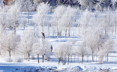 12月1日,呼伦贝尔市出现雾凇景观,海拉尔区沿河公园整片树林被白霜覆盖,晶莹剔透,分外美丽。据呼伦贝尔市气象局工作人员徐玉强介绍,呼伦贝尔市入冬以来气温持续走低,12月1日海拉尔区最低气温达到零下25.5℃,相对湿度超过83%,温度低、湿度大的条件有利于雾凇的发生。雾凇俗称冰花、树挂等,是低温时空气中水汽直接凝华,或过冷雾滴直接冻结在物体上的乳白色冰晶沉积物,是非常难得的自然奇观。