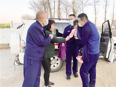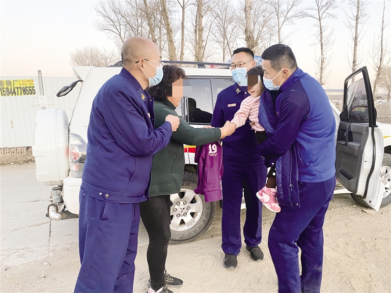 事发当天,内蒙古森林消防总队特勤大队指挥员倪臣、苏金元、李峰正在呼和浩特市赛罕区巴彦镇勘察演练场地,途中发现一名3岁左右的女童身着薄毛衣站在丁字路口瑟瑟发抖,身边并无家属看护,于是立即上前安抚,试图询问其家庭信息。“看到孩子特别无助地站在路口,心想很可能是走丢了,我们就赶紧走上前问,家在哪里,叫什么名字,但孩子年龄太小,情绪又紧张,说不出有用的信息。”12月4日,内蒙古森林消防总队特勤大队指挥员苏金元在接受记者采访时表示,大队指挥员于是发动朋友圈,并主动联系附近的村委会,通过村委会发动力量帮忙寻找,40分钟后,终于找到了走失女童的奶奶。