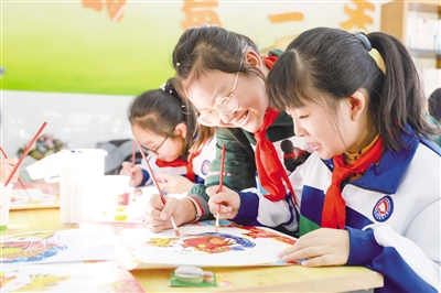 12月6日,呼和浩特市玉泉区通顺街小学学生正在绘制传统年画。当日,为传承弘扬中华优秀传统文化,该校举行了“品味年画创作活动”,学生们在老师的指导下绘制了2022年生肖虎卡通形象,期盼新的一年到来。