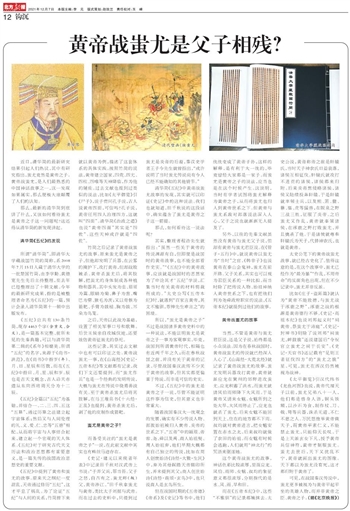 可见,在战国秦汉传说中,蚩尤更多被视为与黄帝平起平坐的英雄人物,而并非黄帝之臣、黄帝之子。(据《北京晚报》)