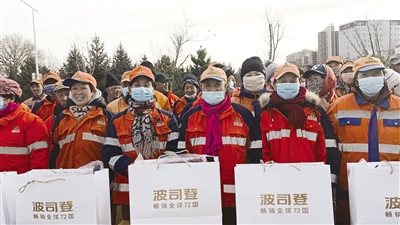 “城市的美丽,离不开环卫工人的辛勤付出。为了城市的卫生清洁,无论严寒酷暑,环卫工人都坚守在岗位上。寒风刺骨的冬季是你们一年中最辛苦的时候,希望这些羽绒服能为你们挡住严寒。”裴永志在捐赠仪式上说。