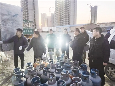 1日下午,执法人员在联合执法时发现,在位于铁骑华府小区西侧大院内停放一辆存有79个液化石油气钢瓶的厢式货车,其中报废瓶18个,超期未检验瓶57个,合格瓶4个,还存有台称2个及部分充装泵等倒装工具。执法人员依法对当事人进行询问并现场扣押液化石油气钢瓶,回民区公安分局食药环侦大队民警对非法倒装液化石油气的当事人采取了行政强制措施。