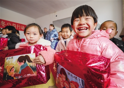 “我的这顶帽子好漂亮,上面还有一个毛线球。”“看看我的手套,上面还绣了一朵花”……活动现场,孩子们拆开盲盒,看着暖心的礼物爱不释手。六年级的晓晓(化名)试戴了一下帽子和围巾,很快又叠好放在盒子里,她眼含热泪:“我等过年或者出远门的时候再拿出来戴,我从小没有妈妈,从未有人给我亲手编织过这些东西,真的很开心,就像是妈妈的爱。”