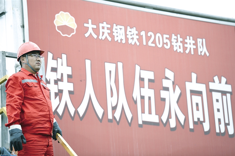 东北大地,寒风凛冽。60米高的野外井架上,“钢铁1205队”的队旗迎风飘扬。大庆油田钻探工程公司钻井二公司1205钻井队是铁人王进喜带过的钻井“铁军”,新的“战场”是易塌、易漏、易井喷的页岩油井。钻井队长张晶紧盯着钻井进度,全体队员开足马力,迎风作战。