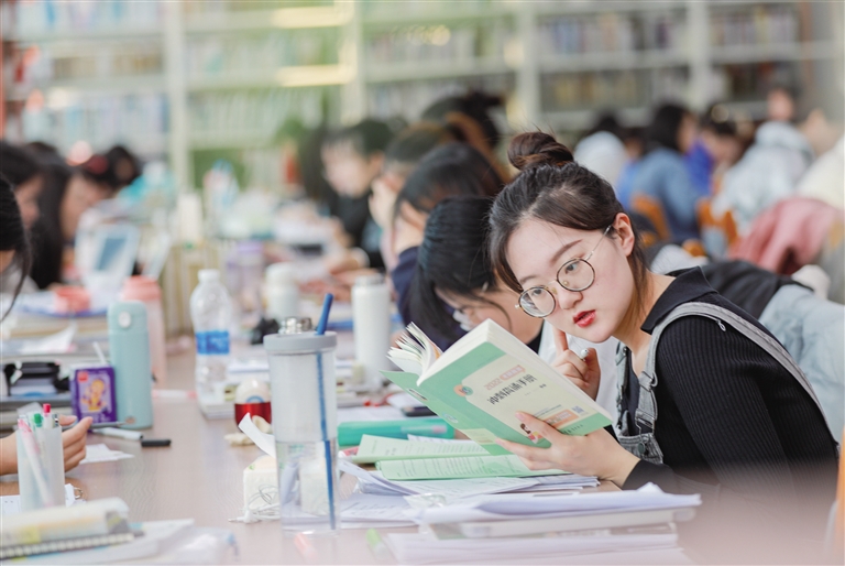 12月14日,在内蒙古师范大学图书馆,考生们正在紧张学习,全力备战考研。2022年全国硕士研究生招生考试将于2021年12月25~27日进行。考研临近,该校图书馆内座无虚席,随处可见考生们专注学习的身影,为考研做最后的冲刺。摄影/北方新报正北方网首席记者 牛天甲