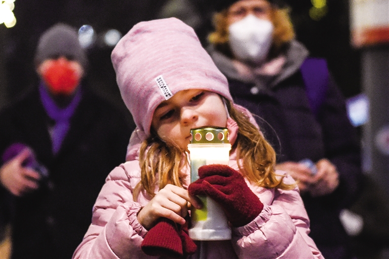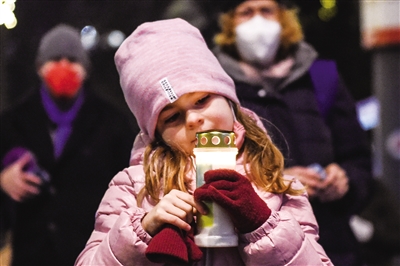一个小女孩用烛光悼念新冠逝者。12月19日,奥地利维也纳举行烛光纪念活动悼念新冠逝者。