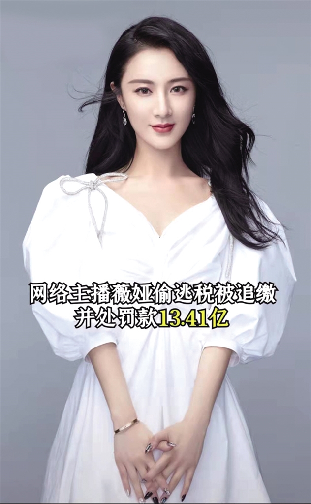 12月20日,浙江省杭州市税务部门发布消息,主播薇娅偷逃税被罚13.41亿元。