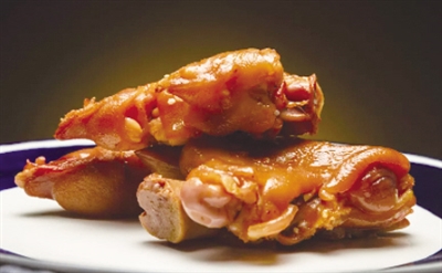 做法:猪蹄去毛,刮洗干净,切成两半,放入沸水中焯一下,放入锅内,加黄精、花生米、黄酒、葱、姜片、清水,武火烧开后,小火炖至熟烂,用食盐调味即可。