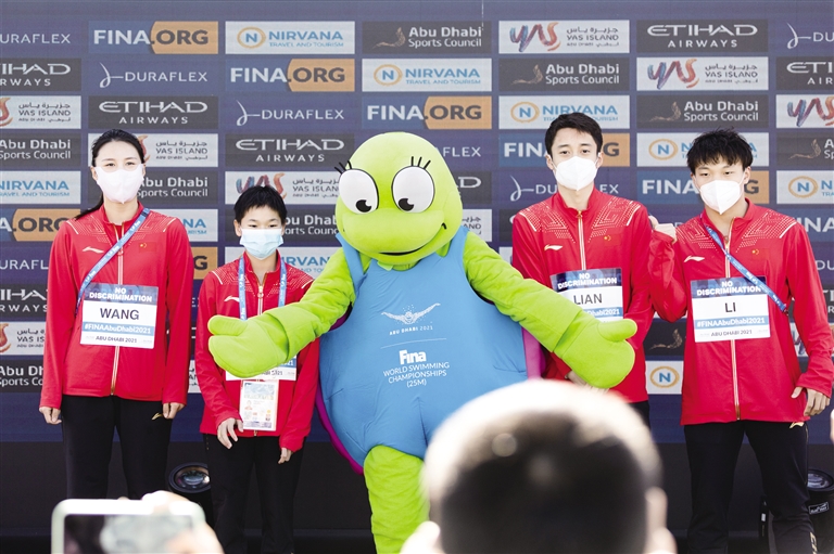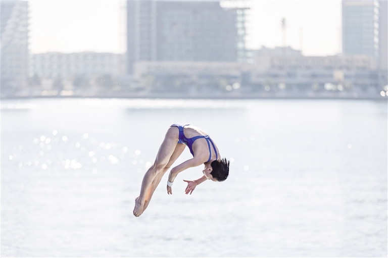 第15届国际泳联世界短池游泳锦标赛在阿布扎比继续进行,在海边搭建的脚手架跳台上,中国跳水队集体体验“跳海”,最终获得跳水表演赛的第三名。巴西队和英国队分列前两位。