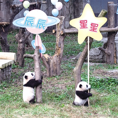 另一对大熊猫双胞胎兄弟是6月10日出生,经线上线下征名,名字最终确定为“星星、辰辰”。