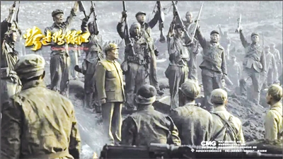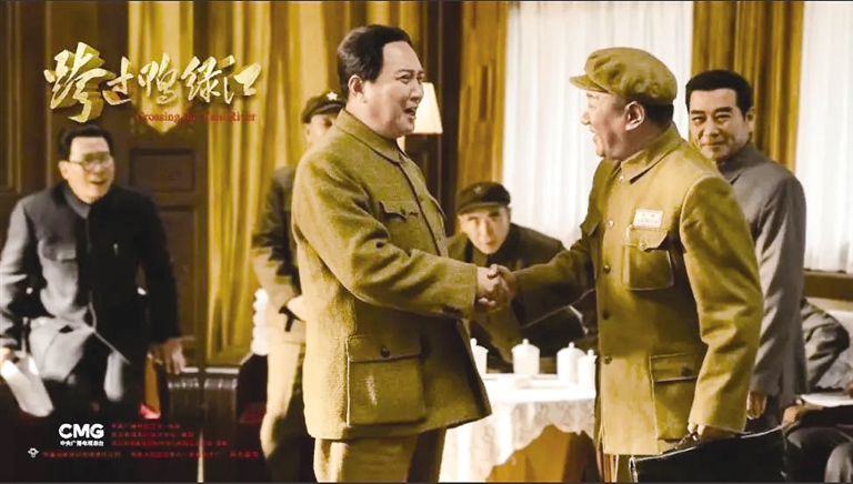《跨过鸭绿江》首先让人感动的是它的“正史”气质,影片很严谨地按照时间的顺序来展现抗美援朝5次战役的过程。在片头片名推出前,影片用了很长的时间来交代中、美、苏等高层人物在战争开打前的心理较量和战前动员。中方有毛泽东、周恩来、彭德怀、邓小平、聂荣臻等;苏联有斯大林;美国有杜鲁门、麦克阿瑟等。这些历史人物家喻户晓,影片选用了很多特型演员来饰演,一下子就让观众进入到浓郁的历史氛围中。