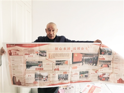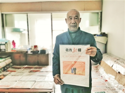 12月8日,记者来到石吉祥老人位于金川开发区的家中,得知记者前来,老人提前一天将所有收藏的报纸整理了出来,逐一摆放在家中的地面、沙发、床面上。记者看到,每一份报纸都用塑封膜悉心封好,不仅有《人民日报》《工人日报》《中国老年报》等中央级媒体的报纸,还有《内蒙古日报》《北方新报》《赤峰日报》等区内报纸,也有《中国电力报》《中国医药报》《国家电网报》《中国食品报》等行业类报纸以及《北京晚报》《新民晚报》等区外报纸。石吉祥老人轻轻摩挲着纸面,一张一张为记者讲解这些报纸的亮点。