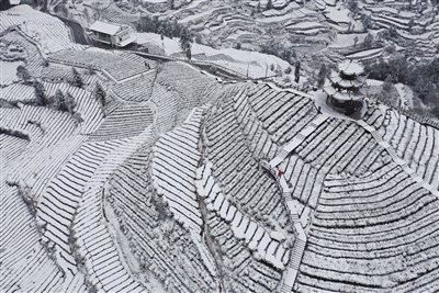 近日,地处湖北省西部山区的恩施土家族苗族自治州迎来降雪,茶园被白雪覆盖,深山茶乡宛若画卷。(据新华社报道)