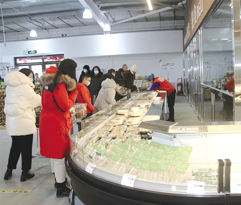 12月30日,在食全食美光明路仓储会员店内,消费者正在选购商品,各种产品琳琅满目,自营类生鲜产品深受年轻消费群体欢迎。“为多渠道给消费者提供高品质商品,食全食美集团公司扩展了仓储会员店,让市民在家门口就能买到优质、价格合理的商品。”