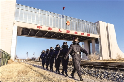 2022年1月1日,零下20摄氏度,驻守在祖国北大门的内蒙古出入境边防检查总站二连出入境边防检查站的民警坚守国门口岸一线,迎着新年第一缕阳光,开始边境巡逻踏查行动,确保节日期间边境地区安全稳定。