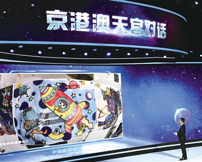 这是中国空间站首次举办天宫画展。在当天举行的“元旦京港澳天宫对话”活动中,神舟十三号航天员乘组对绘画作品进行了现场展示和介绍。