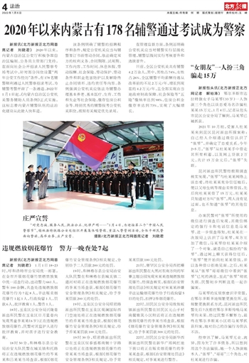 2020年以来内蒙古有178名辅警通过考试成为警察