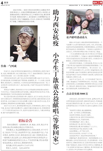 助力西安抗疫 小学生丁歆童公益献唱《等你回家》