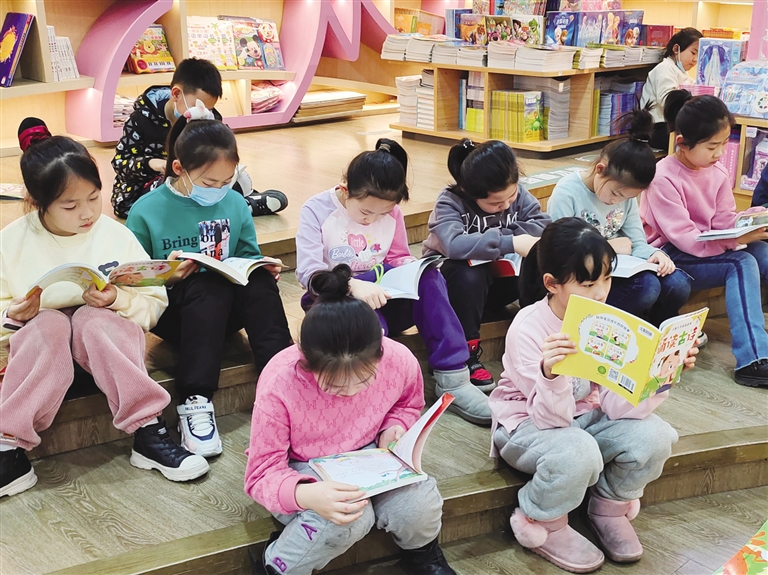 1月10日晚上,孩子们正在青城阅立方认真阅读。当日,呼和浩特市先锋路小学三年级一班雏鹰小分队的同学们开展了以“书香润百年 雏鹰志高远”为主题的社会实践活动,旨在从书中了解英雄模范和典型代表的先进事迹,学习他们吃苦耐劳的奉献精神。文·摄影/北方新报正北方网记者 张巧珍
