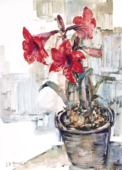 我知道,这老莲是有学名的,叫朱顶红,花语为渴望被爱,追求爱。古代为官者喜欢戴红色官帽,因此,在中式的家具间,那硬木雕刻的花凳上,置一盆朱顶红,有鸿运当头、富贵荣华、喜庆吉祥之意。而在民间,因其绿叶葳蕤成簇,花开背靠成双,又被亲切地称为对头莲,象征夫妻和美,家业兴旺。