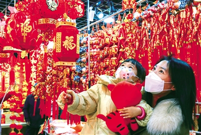 1月18日,首府市民在国贸批发城选购新年饰品。随着虎年春节的临近,呼和浩特到处一派喜庆祥和的景象。记者在该批发城看到,中国结、红灯笼、对联和各式各样的年画让人眼花缭乱,随着琳琅满目的春节饰品供需两旺,红红火火的年味愈来愈浓。 摄影/北方新报正北方网首席记者 牛天甲