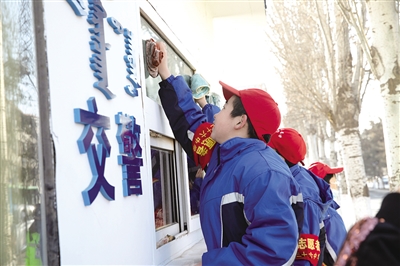 “您好,为了防治大气污染,预防火灾、爆炸事故发生,赛罕区全域范围禁止在任何时间燃放烟花爆竹、点放孔明灯、堆燃旺火……”同学们向广场上锻炼身体的叔叔阿姨宣传禁燃烟花爆竹。