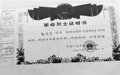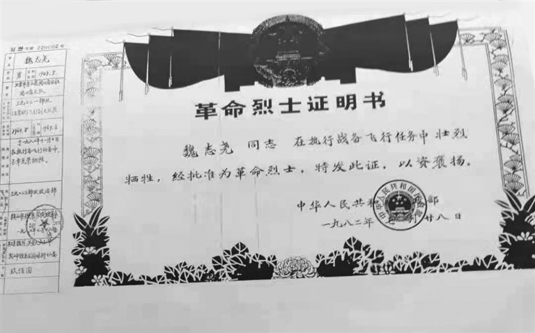 受乡亲们委托,田金良开始到处打听这个事。可两年多时间里,他多方求证也没有结果。2019年6月,田金良自费到北京空军档案馆查证,得到有关部门领导批准,并允许将烈士全部档案材料复印盖章。直至此刻,田金良才得知,当年在大金沟村壮烈牺牲的飞行员名叫魏志尧。