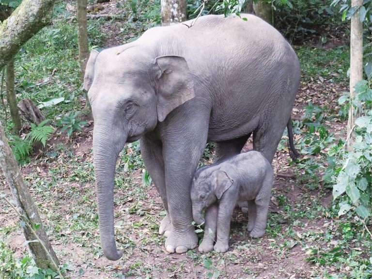 保明伟介绍,每年1月至4月是野象谷野象出没的高峰期,也是野生亚洲象出生的高峰期。最近观察到的6头新生小象,分别来自小缺耳家族、大缺耳家族、然然家族和大噜包家族,小象们都非常健康。这4个家族是近期在野象谷出没最频繁的家族,预计还会在这里停留一段时间。