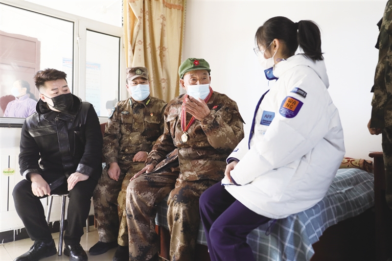 呼和浩特市光荣院供养着36名老人,志愿者们详细询问老兵们的身体状况和生活情况,还和老人们一起贴窗花、贴春联、贴福字,并送上了保暖毯、军大衣等节日礼物。医务人员志愿者还为老兵们进行了身体检查。