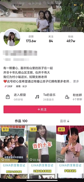 相关报道称,10年间,龙晶睛的“支教足迹遍布湖南、江西、贵州、陕西等地24所偏远山区学校,前后帮助过2000多名山区孩子”。