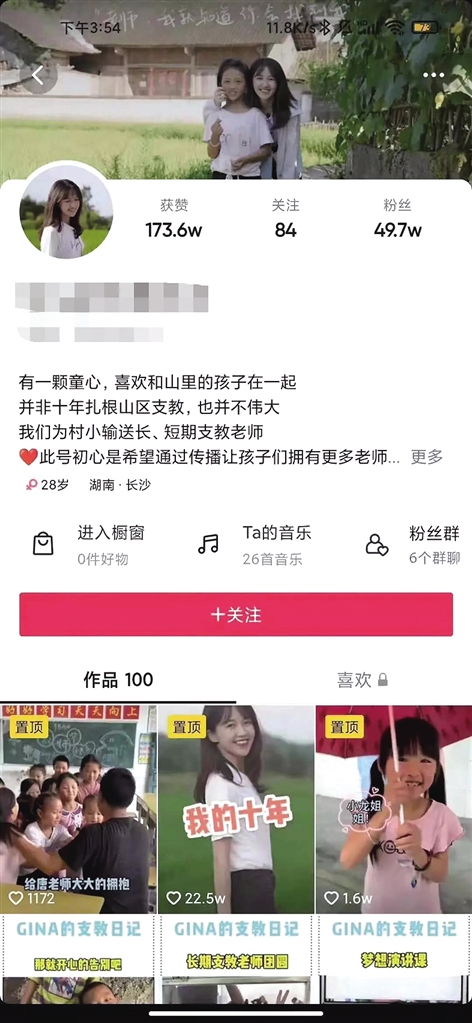 有博主发文质疑称,龙晶睛在短视频平台发布的支教日记有“违和感”,看完视频“不知道她在支教期间干了些什么,也不知道小朋友们到底学到了什么,只记得她武装到牙齿和头发丝的美丽形象”,质疑其“十年支教”的经历是“网红打卡式的持续作秀”。