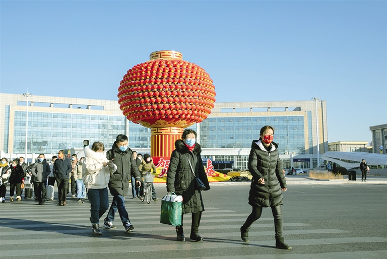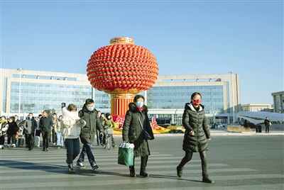 在呼和浩特火车站广场,由数百盏小灯笼组成的巨型灯笼亮相。