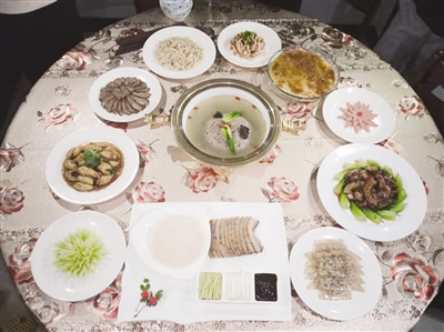 吴志强家今年的年夜饭暂定有十二三个菜,堪称玉盘珍馐、海陆交错,这并非是名厨的炫技心理,而是年夜饭承载了血浓于水的家族情怀。“我家有两个大兄哥,身体不太好,我心想过年他们家就别操劳了,年夜饭都来我们家吃,我们一家人就给操办了,大伙热热闹闹把年给过了。”吴志强告诉记者,年夜饭吃得不仅是味道,更是一份凝聚团圆和祝福的真情。吴家的年夜饭将有十四五个人前来用餐,而这样的情形已经连续5年了,以后也会继续保持下去。(图片由受访者提供)