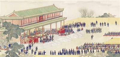 当年参加仪式的有王以下各官、外藩朝鲜、蒙古诸臣,鸿胪卿引诸王、贝勒按顺序从不同的门进入殿内,并按规定的顺序站立。鸣赞官立殿檐者四人,銮仪卫官六人负责鸣鞭。