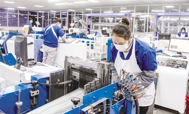 2月7日,在江苏省海安经济技术开发区一家纺织公司,工人在岗位上忙碌。 当日是春节假期后的第一个工作日,各地企业在做好疫情防控的前提下有序开工,迎来新春“开门红”。(据新华社报道)