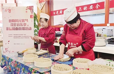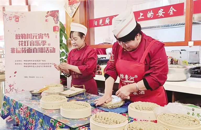 在新城区呼和塔拉大街“敕勒川味道非遗美食——嘉良莜面村”、网红恼包村“桃李源美食大集”及玉泉区“敕勒川味道非遗美食店”等地,非遗传承人现场演示了“搓莜面非遗技艺”,并进行了直播,线上介绍搓莜面技巧、吃莜面的滋味。