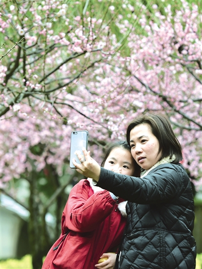~~~2月9日,游客在福州西湖公园梅花树前留影。 近日,福建省福州西湖公园里的梅花竞相绽放,吸引人们徜徉其间、赏花留影,成为一道靓丽的风景线。 摄影/新华社记者 魏培全