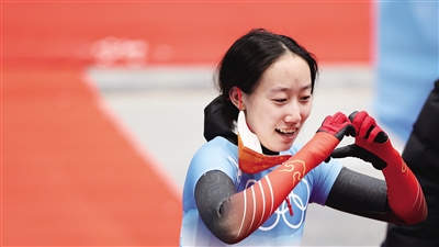 2月12日22时许,当钢架雪车比赛结束之后,年仅19岁的中国体育代表团旗手、内蒙古运动员赵丹拿到第九,她面对镜头比心庆祝,高喊“China”,释放着心里的压力……这是中国钢架雪车国家队女子队员首次登上冬奥会的舞台,赵丹成功完赛,并创造了中国队参赛的新纪录。