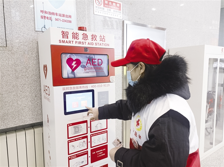 看到老年人和带小孩的旅客,饶巧丽便快步迎上去,询问所乘车次后,把他们引领到“无障碍电梯”的绿色通道。当天是饶巧丽春节后的第三个上岗日,她仔细检查了急救站设备的操作系统,尝试用两种不同方法从急救站取出AED(自动体外除颤器)等应急物资。试取成功,饶巧丽开心地说:“故障得到了及时处理。”昨天下班时,饶巧丽用手机扫描急救站二维码时发现系统异常,为确保应急物资正常取用,她立刻将故障情况反映到呼和浩特市红十字会,请求第一时间联系厂家工作人员前来维修。