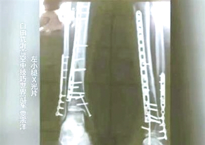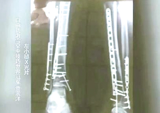 从当时留下的X光片里能看到,贾宗洋的左腿里一共有22根钢钉,他正是带着这样一条残腿,在平昌为中国队争下一枚银牌。直到现在,他的左腿里仍然留有钢钉,如果不是如此顽强的力量在驱动,这名老将怎么可能又一次站上北京冬奥会的赛场?