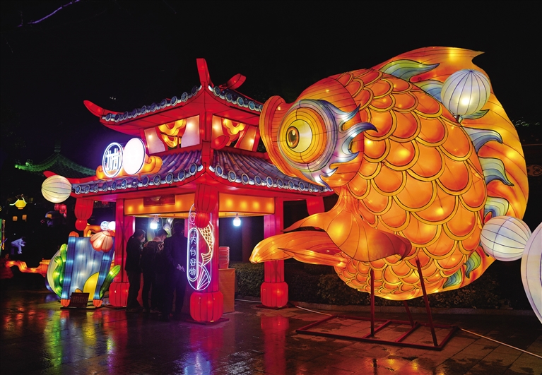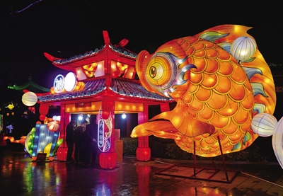 这是2月12日在南昌滕王阁景区拍摄的灯会一景。 元宵节将至,位于江西省南昌市东湖区的滕王阁景区举办新春游园灯会,营造欢乐祥和的节日氛围。摄影/新华社记者 万 象