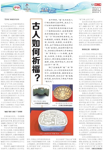 古人不仅在日常生活中通过福文化符号来祈求福寿,在一些重要的时间点上更是郑重其事地举行祈福活动,向神灵、祖先寻求庇佑。最早记载祈福活动的史籍当推《左传》,该书“庄公十年”条目下记载有“小信未孚,神弗福也”的说法,意思是说:如果心不够虔诚,就难以取得神的充分信任,也就不会获得神的赐福。这从侧面反映出,当时人们(尤其贵族阶层)向神祈求保佑、希冀赐福的活动已十分普及。司马迁的《史记》较《左传》晚,也记载了更早以前的祈福活动。该书卷一《五帝本纪》载,黄帝统治时期,常举办祈福祭祀活动,“万国和,而鬼神山川封禅与为多焉。”