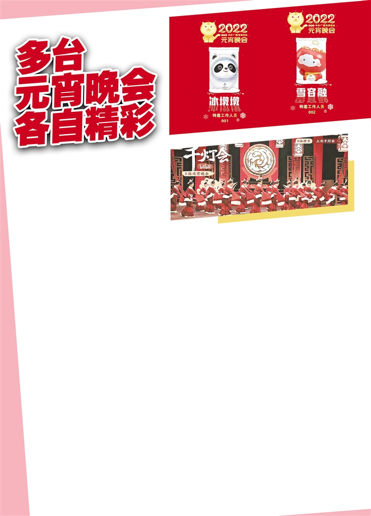 天津电视台《箫鼓华灯歌万家──2022年元宵晚会》 已于近日录制完成。据悉,该台元宵晚会共分为阖家团圆庆佳节、日新月异新生活、筑梦冬奥冰雪情、大爱无言津门情四个篇章。元宵晚会上,歌唱演员张晏蓉带来原创歌曲《雪舞》;音乐人李亮节创作并演唱情景表演唱《一家老小向前冲》;青年戏曲曲艺演员张梦瑶、朱文成、齐梓路、刘滢、陈亭、张元杰、夏炎、时唯共同演绎原创京评梆曲联唱《一起向未来》。此外,12位青年相声演员刘默岩、王闻千、管新成、张尧、王迎、王铮鑫、马勇、王思宇、李建峰、高鹏飞、刘晟恺、李震霆表演原创群口相声《十二生肖闹元宵》。(据《新快报》)