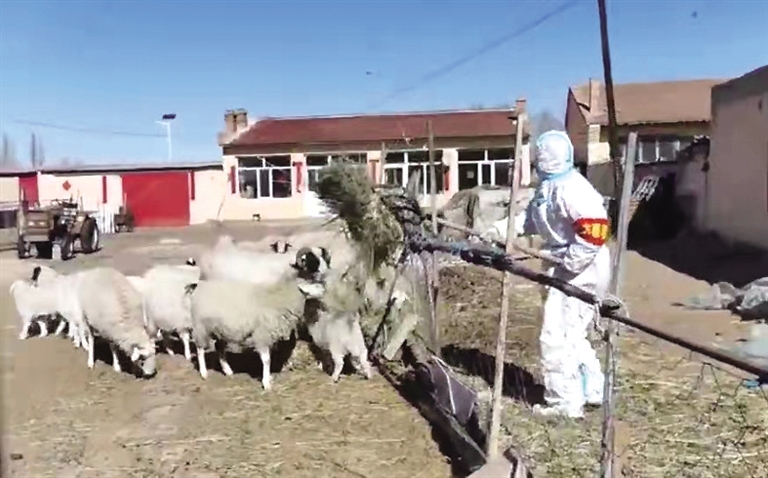 原来,家住呼和浩特市武川县上秃亥乡刘家行政村范家小泉子村年过八旬的陈女士被确诊新冠肺炎送至定点医院治疗,其老伴作为密切接触者也被隔离,临走时,两人一直担心家里养的41只羊没人喂养。得知这一情况后,回村做志愿者的梁成刚主动承担起喂羊等家畜的任务。就这样,梁成刚在做好村里疫情防控的同时,化身饲养员帮助老两口喂羊喂狗,还要照料新出生的羊宝宝。