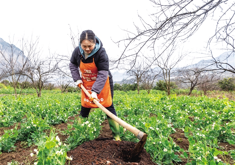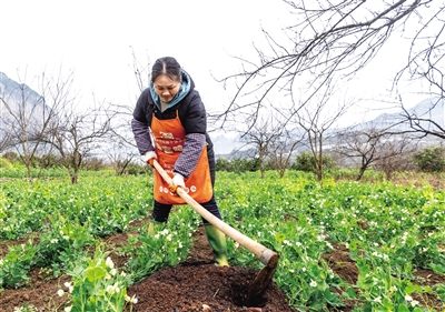 2月21日,村民在贵州省黔西市关大镇丘林村的地里劳作。 当前正值春耕生产时节,各地农民抢抓农时,田间地头一派繁忙的春耕景象。(据新华社报道)