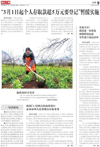 “3月1日起个人存取款超5万元要登记”暂缓实施