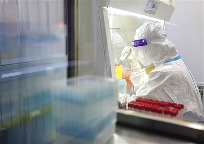 2月23日,呼和浩特市妇幼保健院精准医学实验室的工作人员正在检测核酸样本。据了解,自呼和浩特市本轮新冠疫情发生以来,首府已开展五轮核酸检测。该院实验室检验人员24小时不停歇地进行核酸检测工作,竭尽全力进一步缩短结果报告时间,为市民提供更好的服务。 摄影/北方新报正北方网首席记者 牛天甲